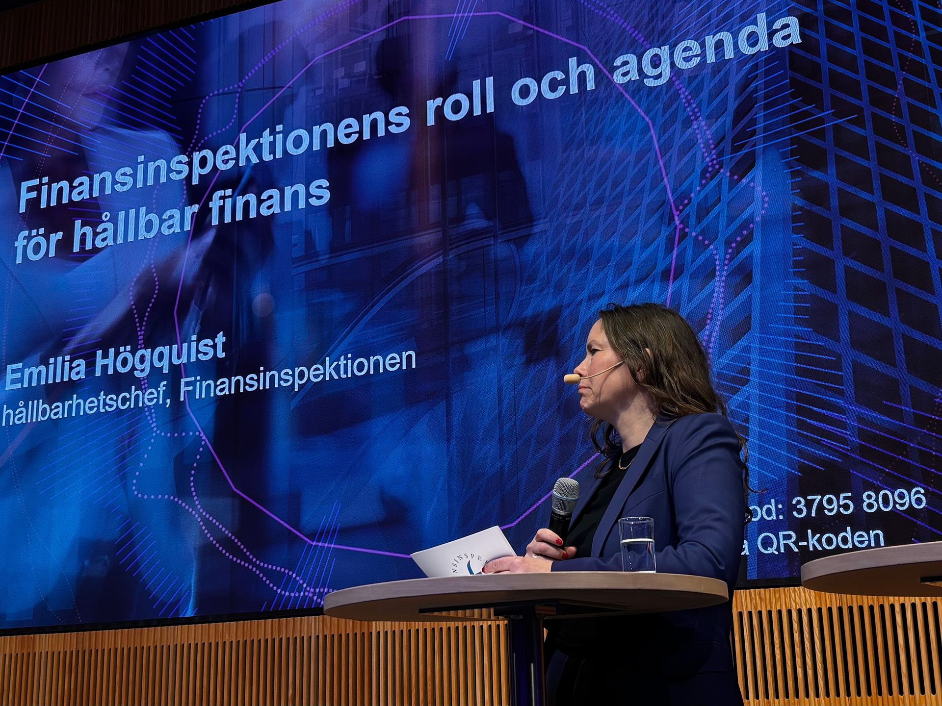 Finansbranschen behöver fortsätta arbeta med att påståenden kring hållbarhet ska vara korrekta, samtidigt som revideringar i regelverken på området kommer att innebära utmaningar för de finansiella företagen. Det lyfte Emilia Högquist, hållbarhetschef på FI, när hon den 11 mars medverkade på konferensen Hållbara Finanser 2026.