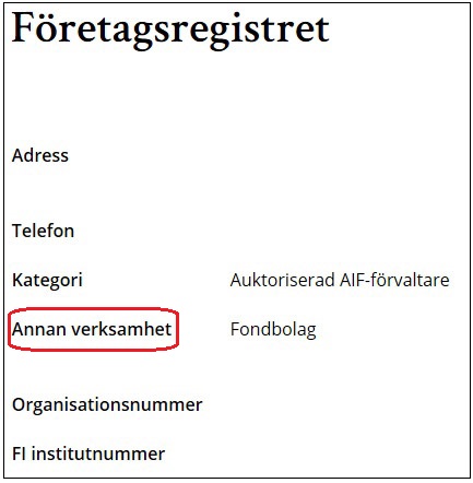 Kategori motsvarar huvudverksamhet eller annan verksamhet.
